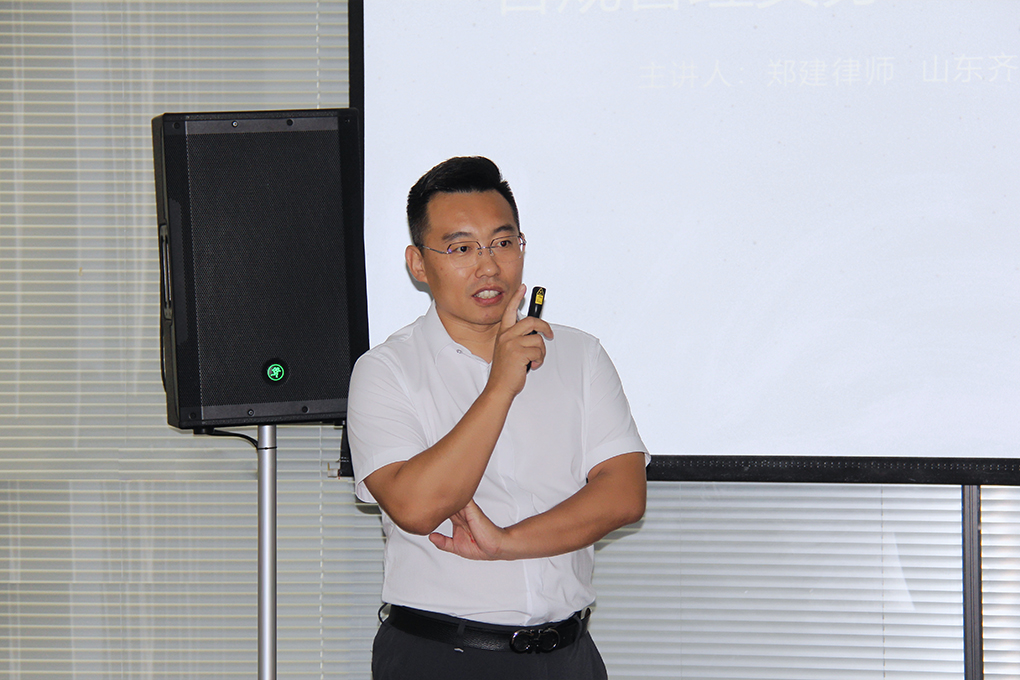 本次培训由齐鲁律师事务所合伙人郑建律师主讲。郑建律师具备高级企业合规师资质,同时担任奎文区首席法律咨询专家、潍坊市政协专家库成员等多项职务,在企业合同合规领域经验丰富。培训内容紧密结合企业实际,围绕采购、销售、设计、财务四大类合同的风险点及防范策略展开。